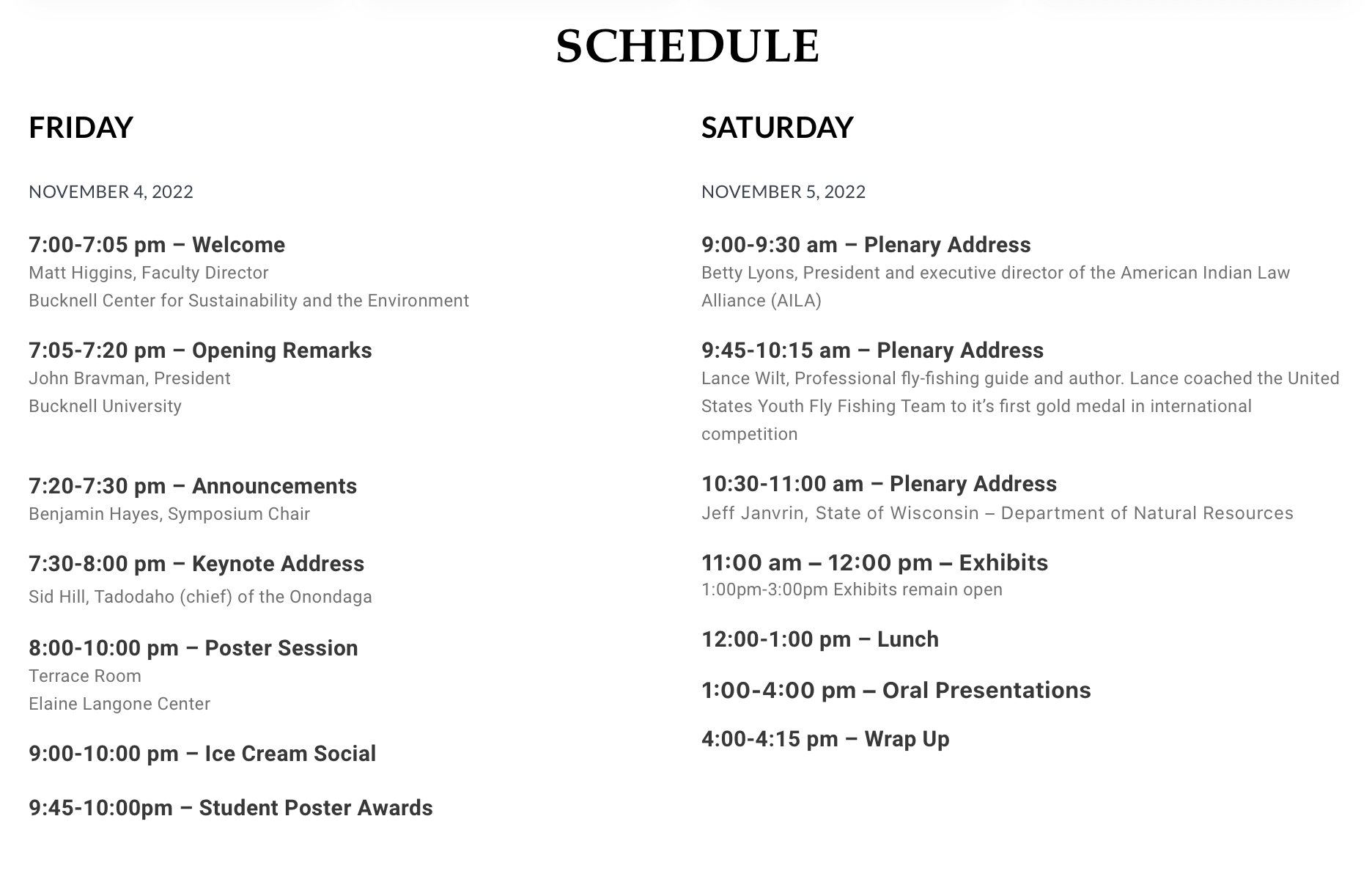 The Bucknell River Symposium draws together people from all walks of life who share a common interest in rivers, watersheds, communities, and the connections therein. It also offers a time and a place where the public can interact with academics, professionals, and regulators, all working toward the same goal - ensuring our watersheds remain healthy for generations to come. This year’s event, themed will highlight and promote collaborative partnerships that focus on improving the health and resilience of streams and aquatic ecosystems.